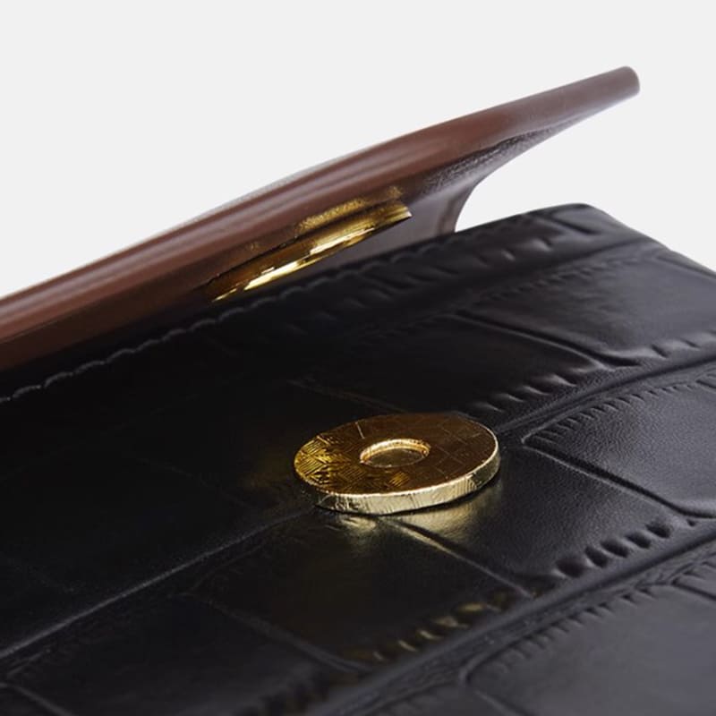 This mini croc handbag with smooth Magnetic closure is convenient to open and close and safely protect your items.