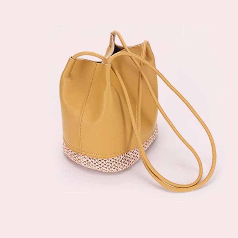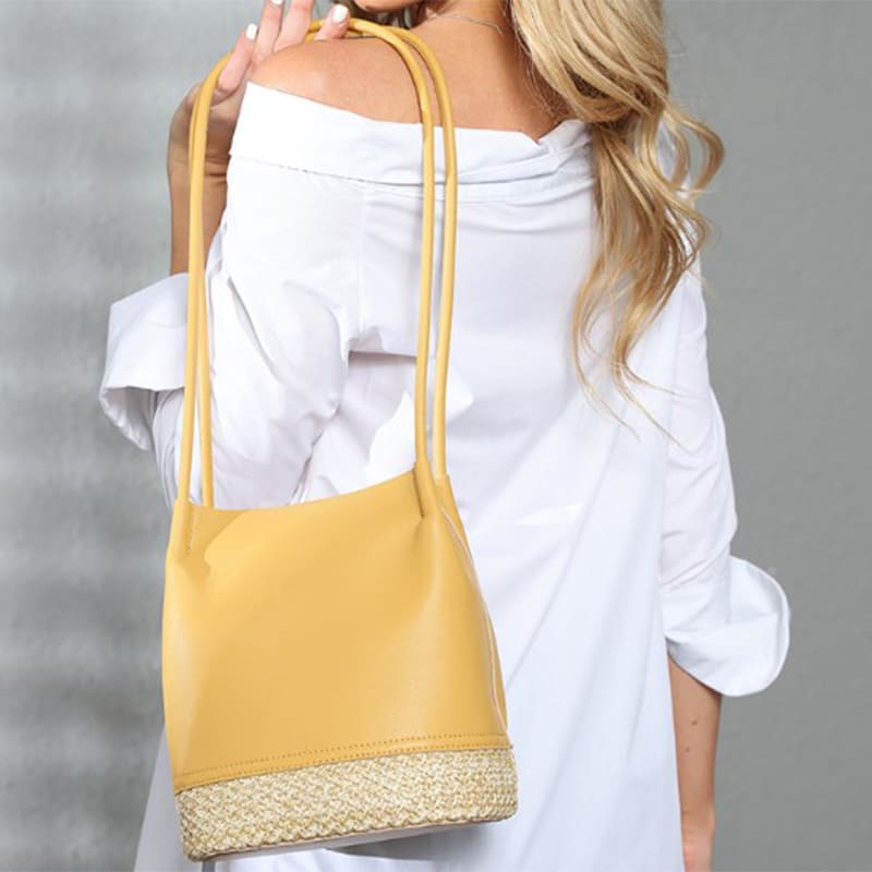 The bottom of the bag is spliced with straw weaving, giving it a sense of design. High quality cowhide, with a soft and smooth feel.