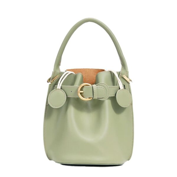 This tote bag is made of soft and durable PU leather. Fastening rivets on the handbag and on the shoulder strap make the bag more durable and chic.