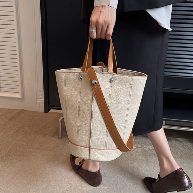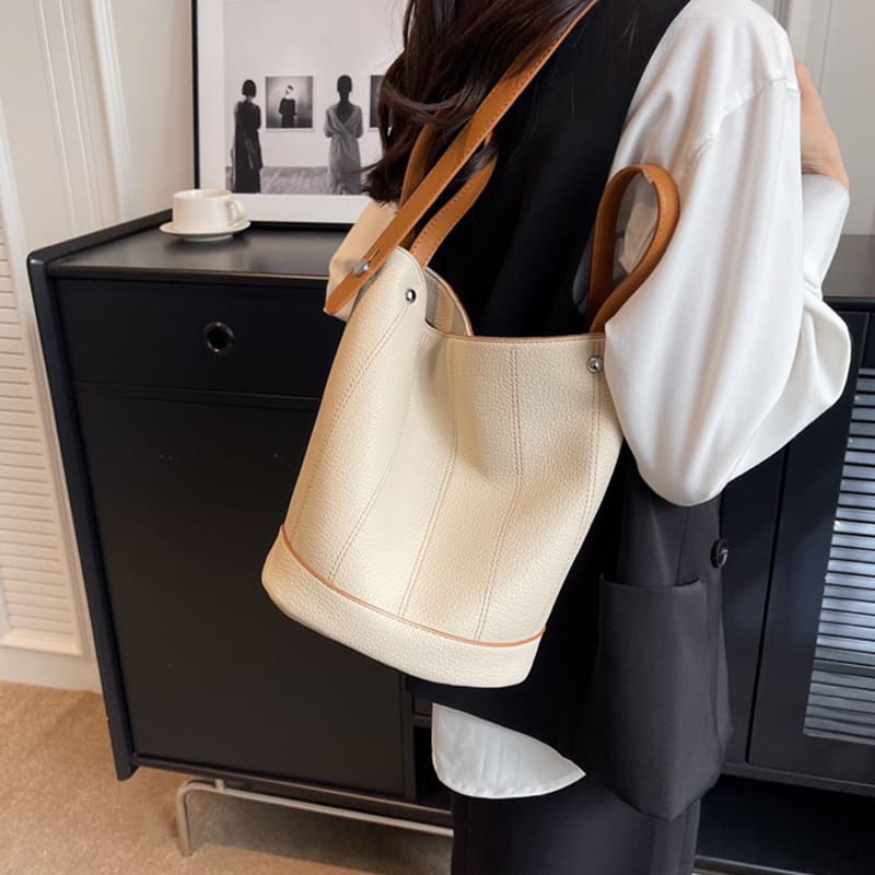 The bag is made from imported cowhide, the leather is plump and comfortable to touch, with clear and visible grain patterns. The details are full and matched with contrasting stitching to create a striped pattern on the body.